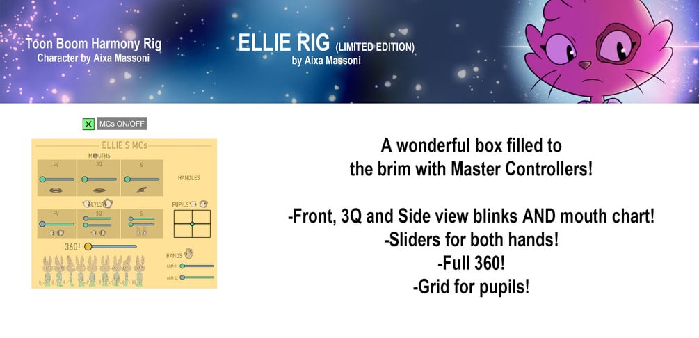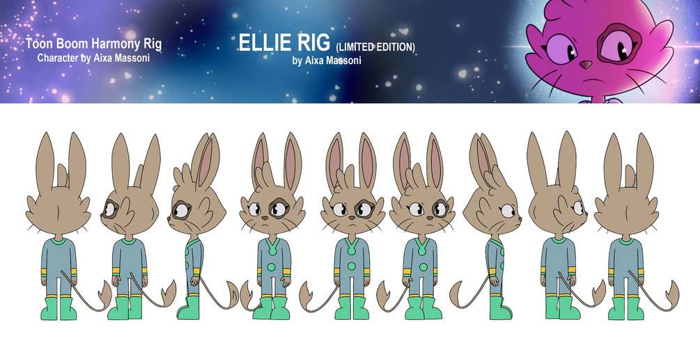 The Ellie Rig, my own original character, is HERE for limited time! This is a free Toon Boom Harmony rig, great for advanced cutout animation and rigging practice!